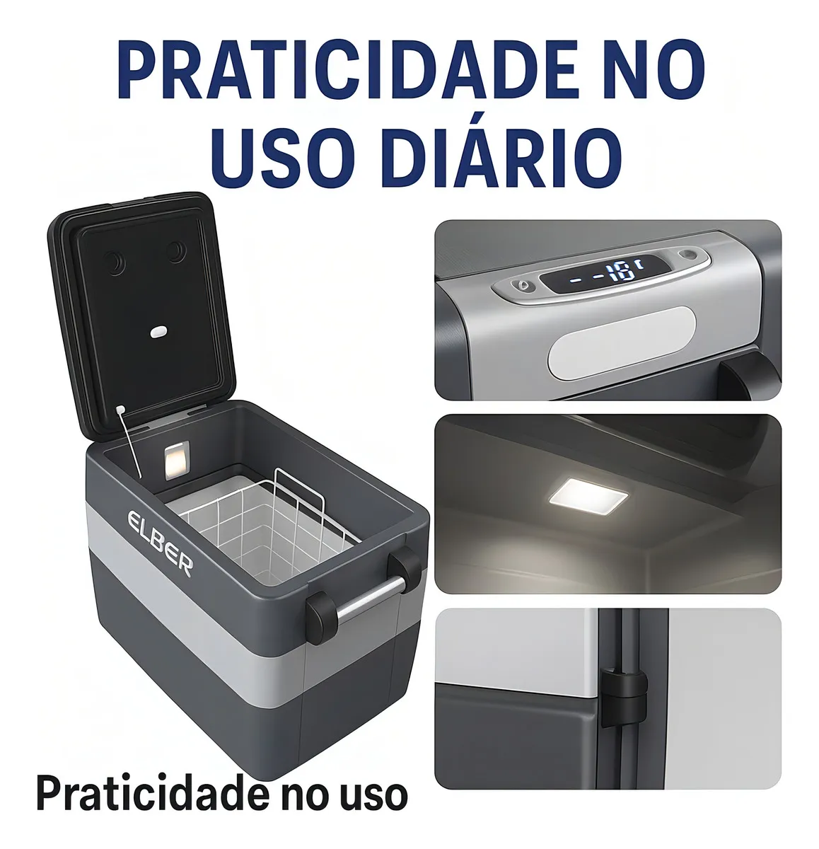 Com 47 Litros, essa novidade Elber Ideal para você que busca por mais espaço para conservar seus alimentos, sem perder em mobilidade! Afinal, você leva a sua Elber Portátil para onde quiser!
