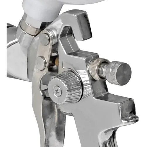 Pistola de Pintura Pneumática HVLP Gravitacional possui copo plástico de 600ml, entrada de ar de 1/4″ e corpo cromado. Com seu sistema HVLP, permite alta eficiência em termos de qualidade de pintura e economia de tinta. Ideal para aplicação de materiais para revestimento e acabamentos, com exceção de materiais corrosivos e abrasivos. Apresenta ótima qualidade de pintura e proporciona economia de tinta, menos névoa e consequentemente redução de custos.